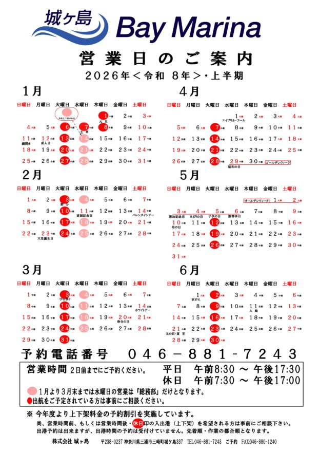 【土・日・祝日】 AM7:30 ~ PM17:30